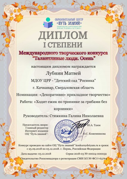 Участие в международном конкурсе "Талантливые люди" (диплом 1 степени)