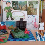 Поздравляем всех с днем Победы!!!      Предлагаем принять участие в выставке, посвящённой этой знаменательной дате и совместно с детьми нарисовать открытки или сделать поделку.  Дети посетят музей в подготовительной группе, познакомятся с военной атрибутикой, узнают много интересного о назначении предметов, а рассказывать будет воспитанница подготовительной группы.